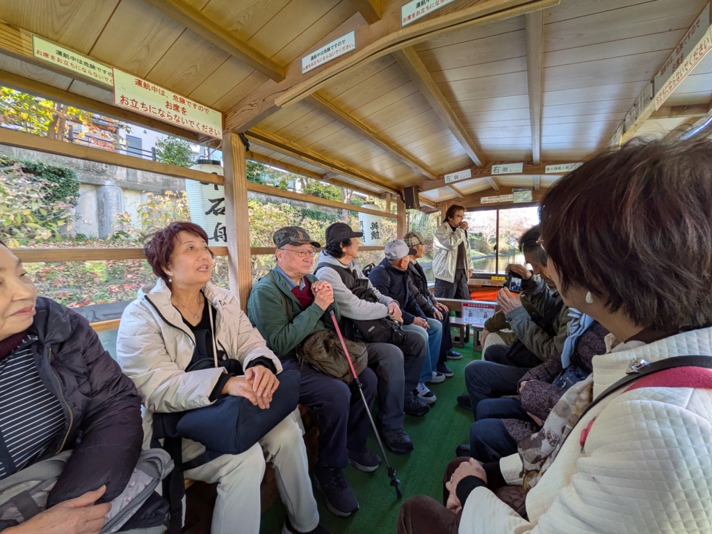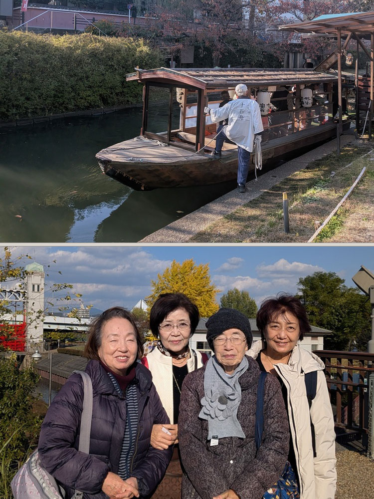 かつて伏見の物流を支えた水運の名残を伝える十石舟。川沿いに広がる紅葉や蔵の白壁を眺めながら、ゆっくりと進む舟の上では会話も自然と弾み、参加者からは「京都らしい景色が楽しめてよかった」との声が聞かれました。伏見に10年住んでいる川村さんも初体験とのことでした。