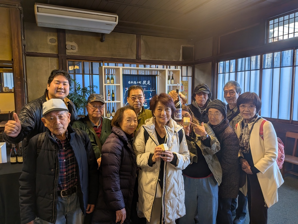 館内には玉乃光や富翁、英勲伏見の清酒がずらりと並び、16銘柄を飲み比べることができる利き酒体験を楽しみました。利き酒クイズに挑戦し、参加者10名中4名が見事的中。特製のオリジナルお猪口を獲得しました。